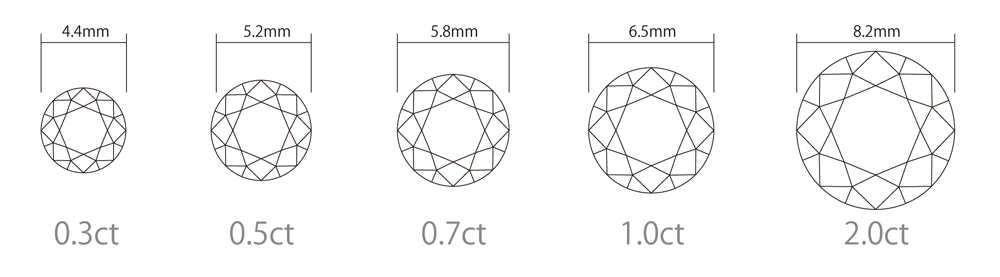 ダイヤモンドの重さはカラット(carat)で表示されます。